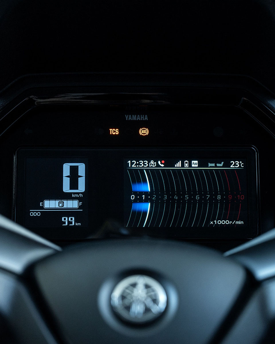 YAMAHA 2025 XMAX 300 把 4.2 吋TFT 螢幕與 3.2吋 LCD 螢幕合併為一
