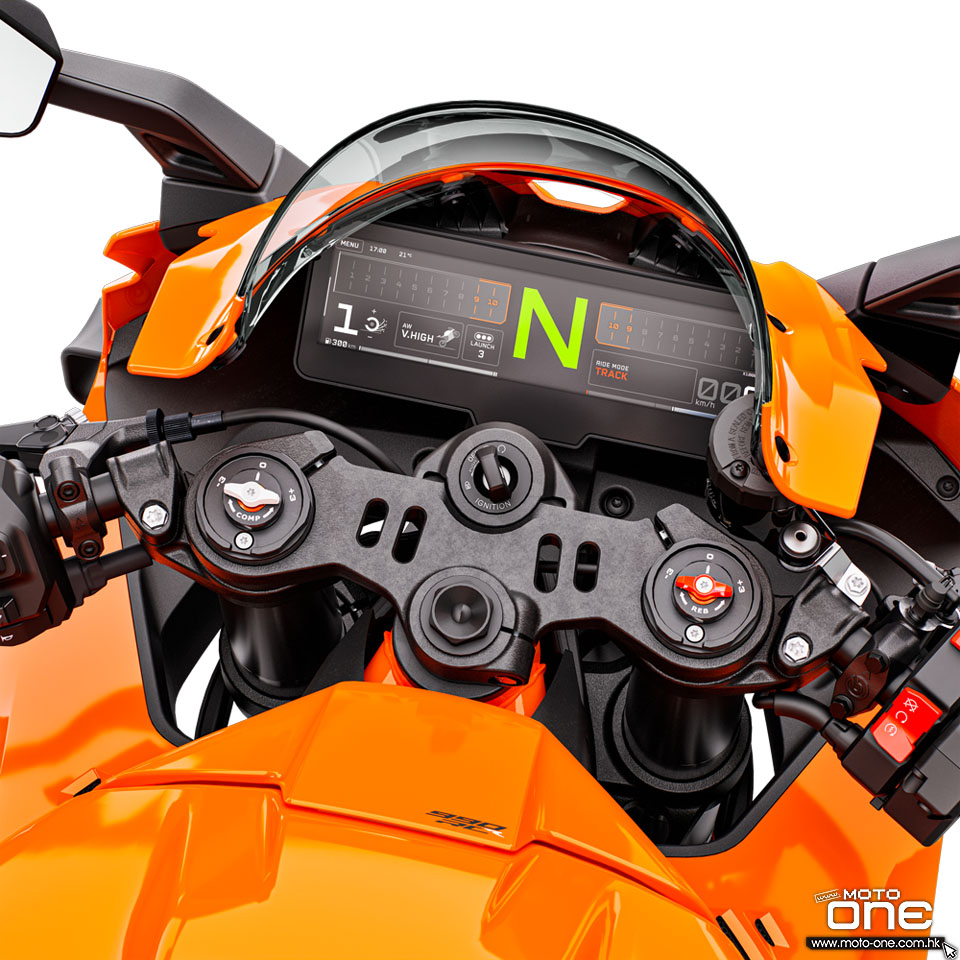(香港接受預訂) 雖然KTM近年推出大排量的RC8大包圍跑車,但只屬賽道玩具,不能合法上路;至於市販跑車就只有RC390。不過KTM最近公佈了更大排氣量的市販跑車──2026 KTM 990 RC R,對手是Ducati Panigale V2、YAMAHA R9或同級跑車,亦即是Supersport類型跑車,廠方更請來旗下MotoGP試車手柏度莎拍攝宣傳短片。