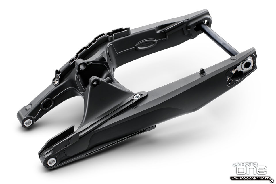 車尾部分採用鋁合金壓鑄尾搖臂,配合多連桿尾避震結構,提供更高剛性與彈性平衡,增強穩定性與對顛簸路面的吸震能力。