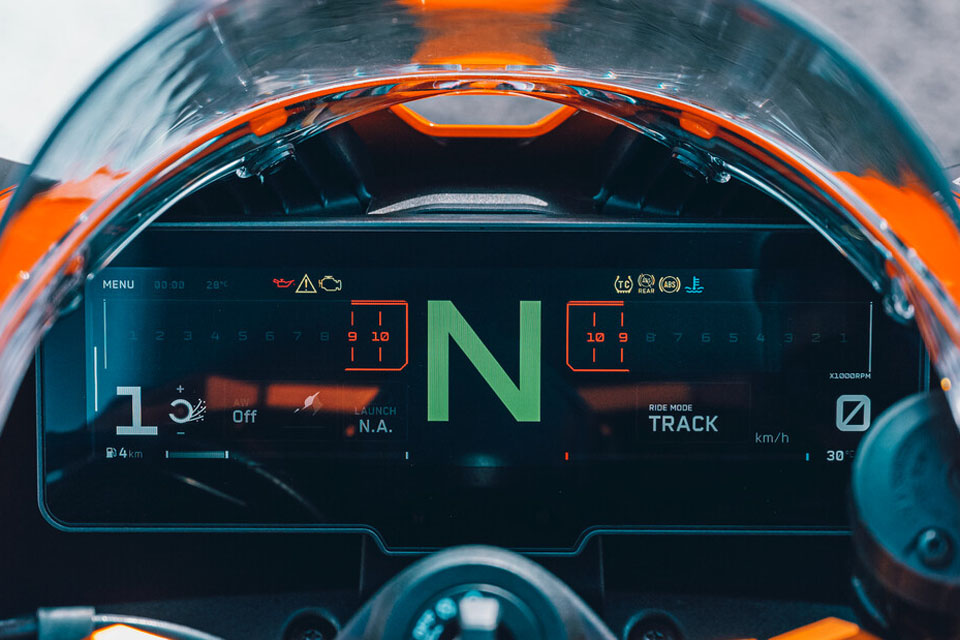MotoGP定風翼 KTM在MotoGP累積了大量空氣動力學數據,而KTM 990 RC R的外觀設計與旗下MotoGP廠車RC16同出一轍。