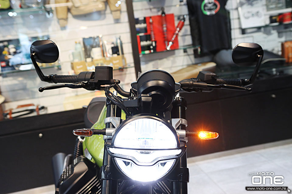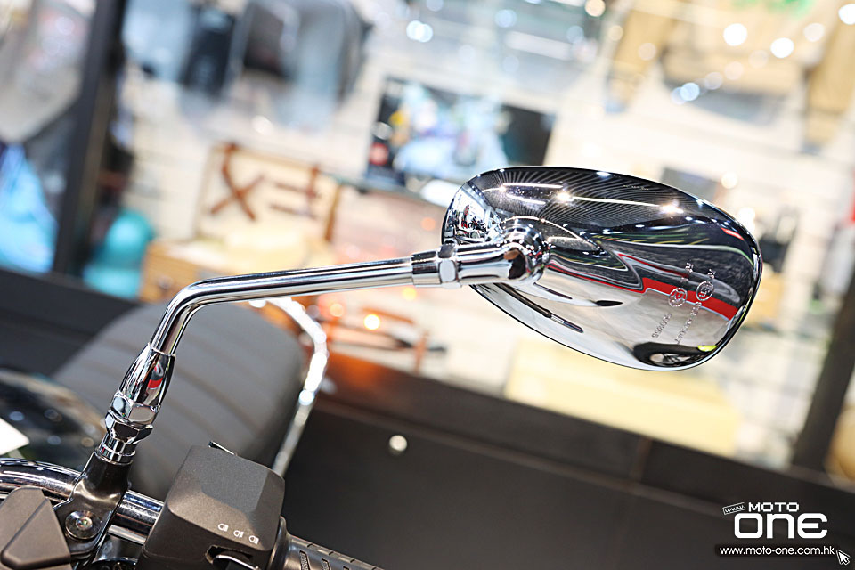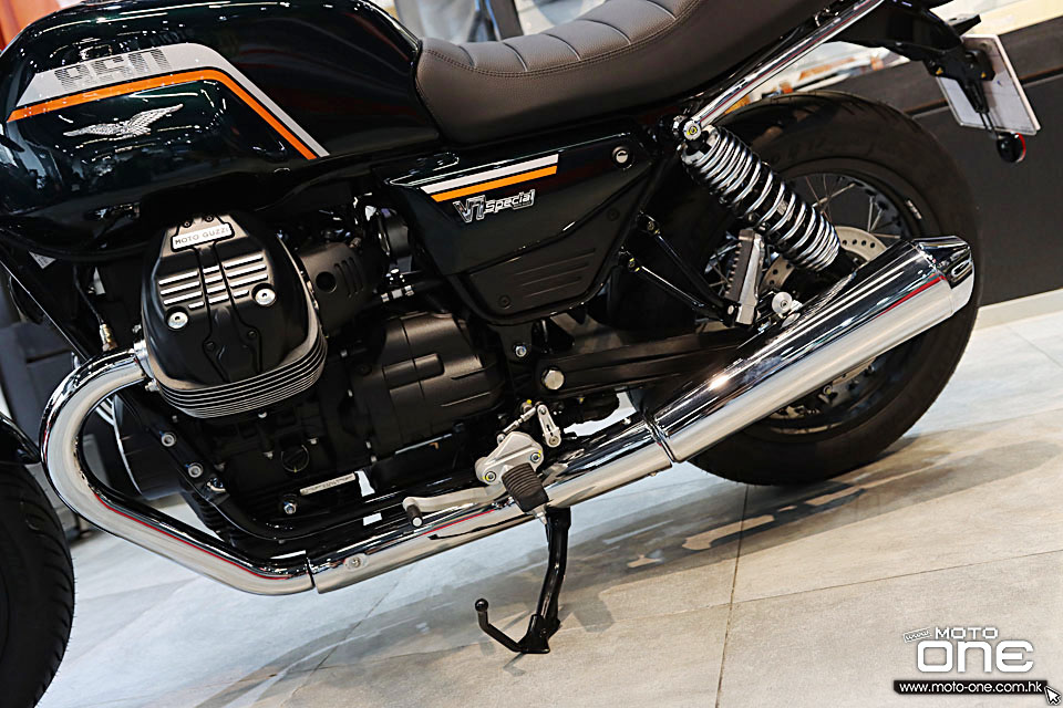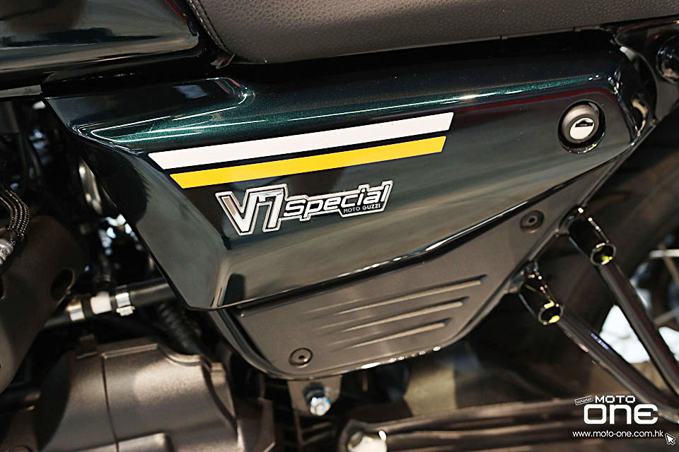V7 Special Euro5+ 復古街車多處採用電鍍部件,包括:排氣喉、倒後鏡、軑把、乘客扶手、頭燈殼、平衡端子。