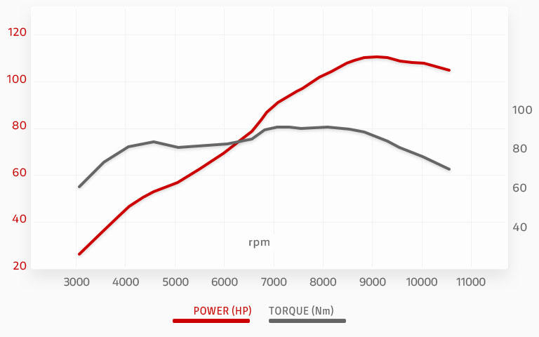 在 4,000rpm 至 10,000rpm 之間,這副 V2 引擎能提供至少 80% 的峰值扭力,帶來易於操控又靈活的輸出特性,令 MONSTER成為一部既不具壓迫感、又有充沛加速力的NK車。