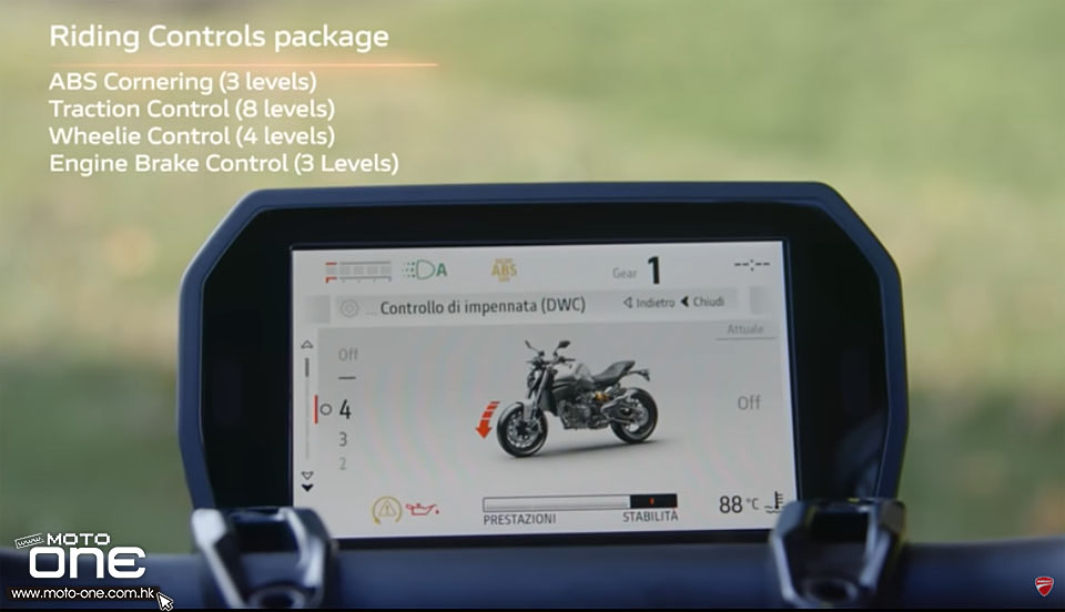 這些系統包括:彎道 ABS、循跡控制(Traction Control)、起頭控制(Wheelie Control)、引擎煞車控制(Engine Brake Control),以及跟車的快排系統。