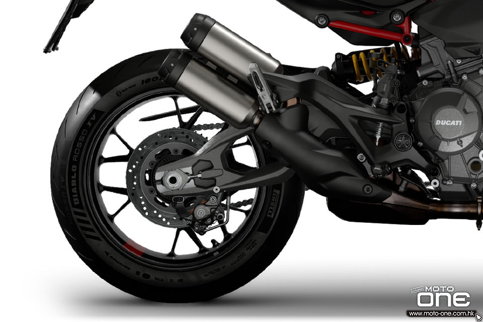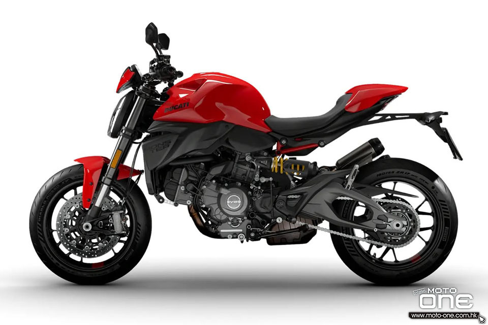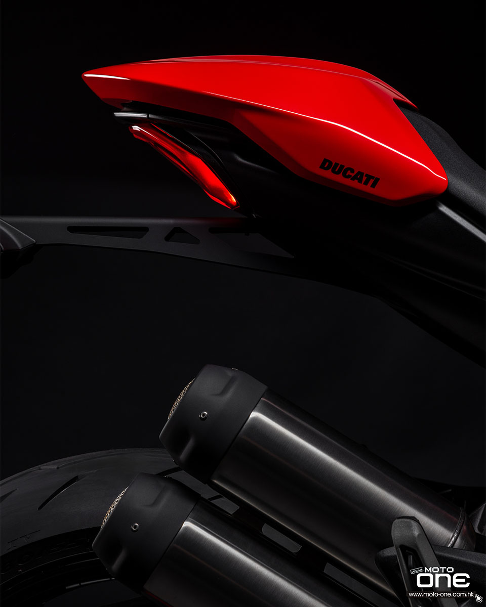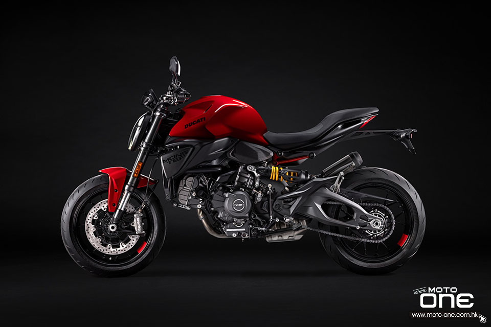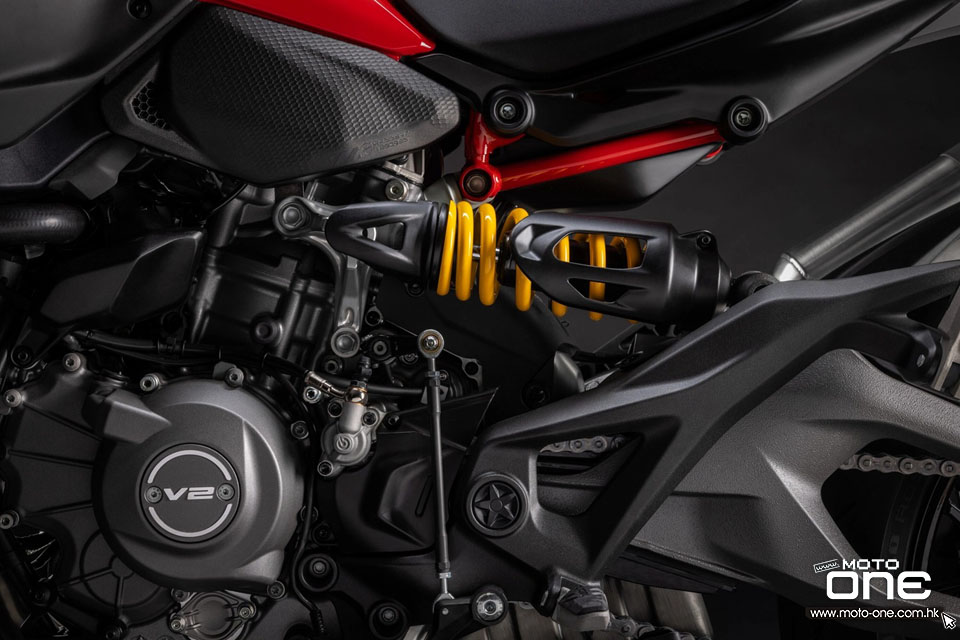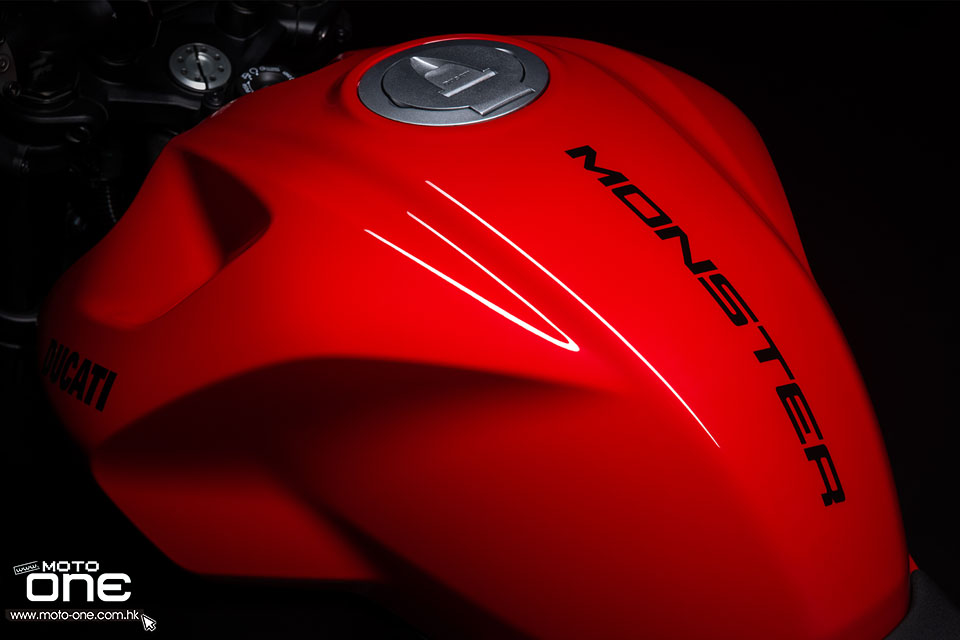 新款除了重量更輕之外,V2 引擎的結構剛性亦極高,自上一代起更成為車架一部份,使MONSTER 得以採用比過去(鋼管車架)更輕巧的單體式(Monocoque)車架。