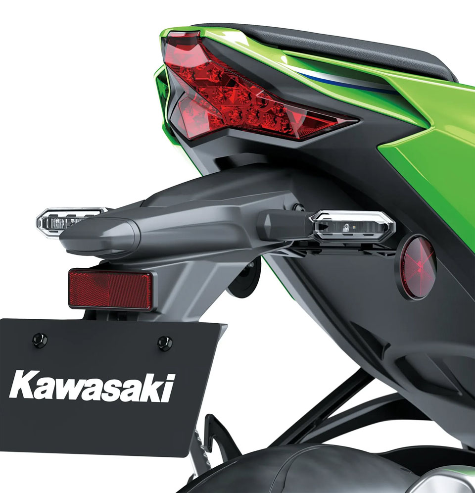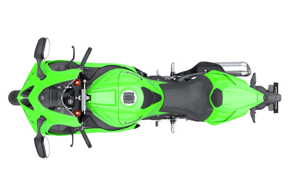 新車頭採用低燈投射式+高燈反射式 LED 組合,中央心型 Ram Air 進氣口改設於頭燈上方,與ZX-6R相同,兩邊均以黑色亮面飾件強調層次感。