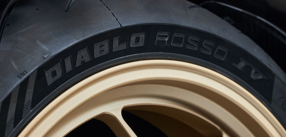 輪框為鍛造輕量化鋁合金,配 Pirelli Diablo Rosso IV 輪胎及鈦合金 Termignoni 排氣管,進一步降低非簧質重量並提升操控,同時帶來更具個性的排氣聲浪。