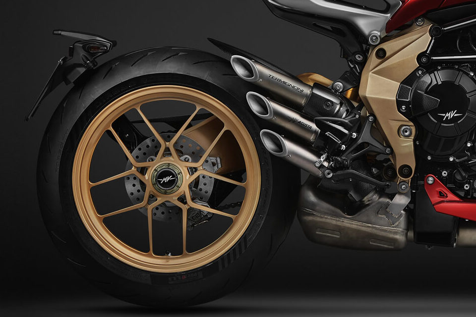 每部 Brutale Serie Oro 皆於意大利工廠手工裝配。特別版 Serie Oro CTG 提供 Pearl Red(珠光紅)與 Silver Ago(阿戈銀)兩款配色,以致敬 MV Agusta 的賽車傳統。