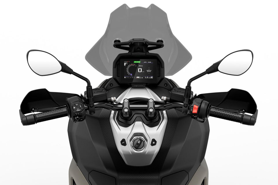 新車配備全 LED 照明系統、免匙啟動功能以及 5 吋 TFT 全彩顯示屏,讓各項行車資訊一目了然。透過選配的 Aprilia MIA 系統,更可與智能手機連接,輕鬆操作通話、音樂及導航功能,令駕馭體驗更智慧化、更便利。