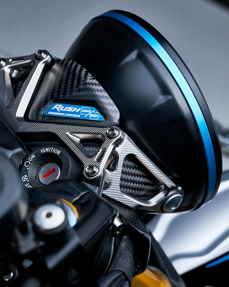 碳纖維依然是RUSH的重要配置。MV AGUSTA表示,TITANIO版本的所有碳纖部件均改用全新的斜紋織紋表面處理,取代以往的紋理設計;同時,部分經陽極處理的鋁合金零件,亦統一採用專屬的「Blu Titanio」「鈦藍色」色調作為點綴。