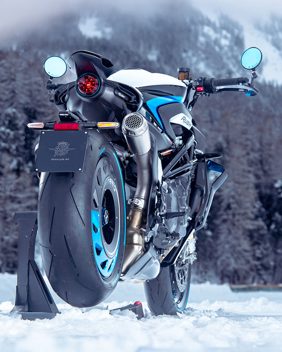 MV AGUSTA選擇在「The I.C.E.」(1月30日至31日舉行)發佈RUSH TITANIO,這項每年冬季在瑞士聖莫里茨舉行的傳統古董車盛會,主辦方會在冰雪環境中展示及安排珍稀汽車與電單車進行動態或靜態展示,藉此突顯機械工程、設計美學與生活品味之間的關係。所以MV AGUSTA選擇在The I.C.E.發佈RUSH TITANIO,象徵著車子極具收藏價值。