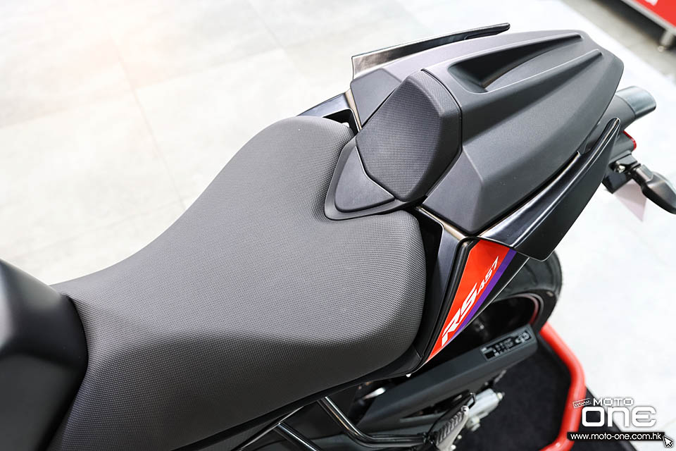 全車採用LED燈組合。 RS457 Racing Stripes特別版車頭入風口貼上APRILIA圖案貼紙。