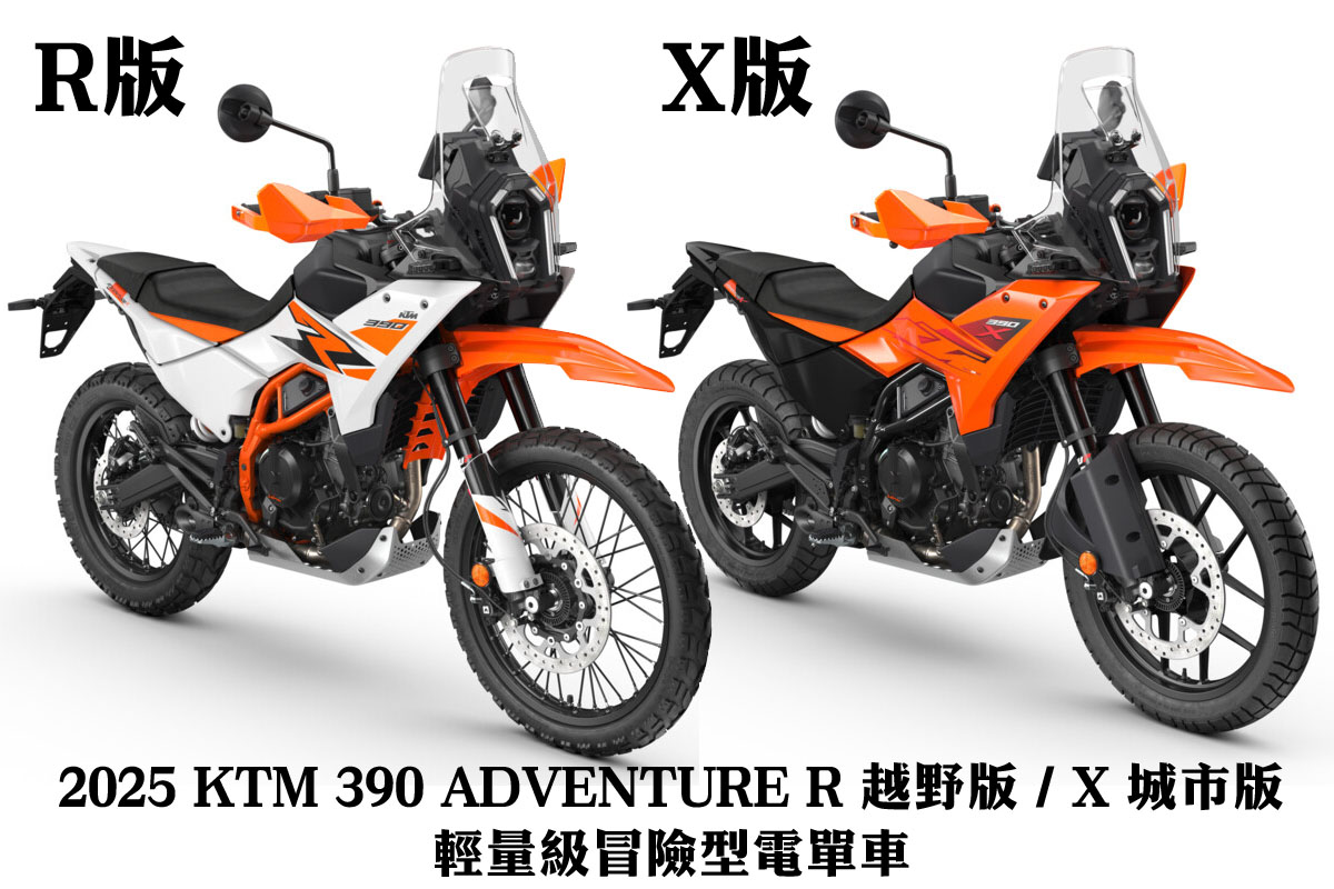2025 KTM 390 ADVENTURE R 越野版 / X 城市版 - 輕量級冒險型電單車 KTM 官方已經正式公布全新的390 ADVENTURE分別會有兩個型號 ,"R" 及 "X" 簡單地可以演繹為城市版及越野版,引擎機械及車架相同 , 主要分別在懸掛輪圈 set up 上。