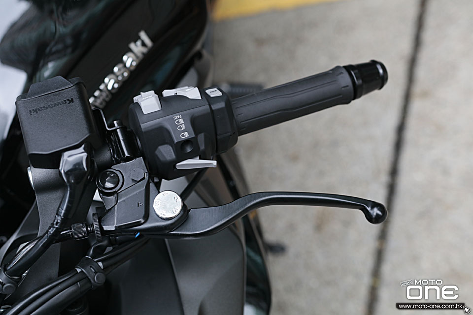 備有發熱扭油筒,冬天駕駛更舒適。 MODE及選擇設定掣,並有定速巡航掣。 電子定速巡航控制系統(Kawasaki’s cruise control system)
