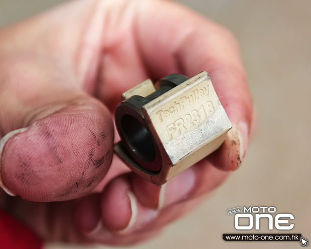 其次是最好一併更換新皮帶,因為鬆馳的舊皮帶在縮油時造成空波,可能導致普利珠「翻珠」。雖然多邊形珠有更佳的起步反應,但由於需要勤力進行保養,對一般用家來說有點困難,因此較適合賽道使用。