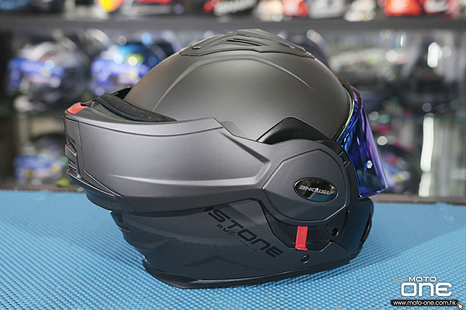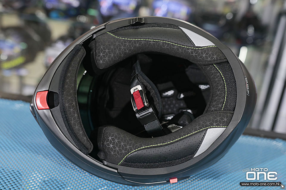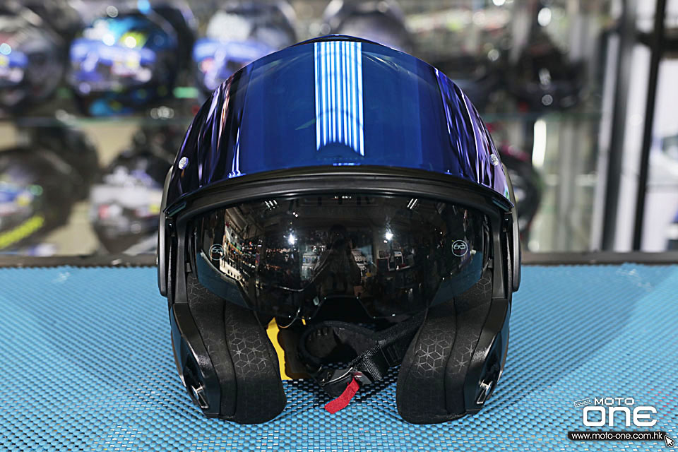 其下巴保護殼可向後掀起,讓騎士隨時切換不同騎乘需求;而得益於均衡的重量分佈設計,配戴時保持舒適自在。