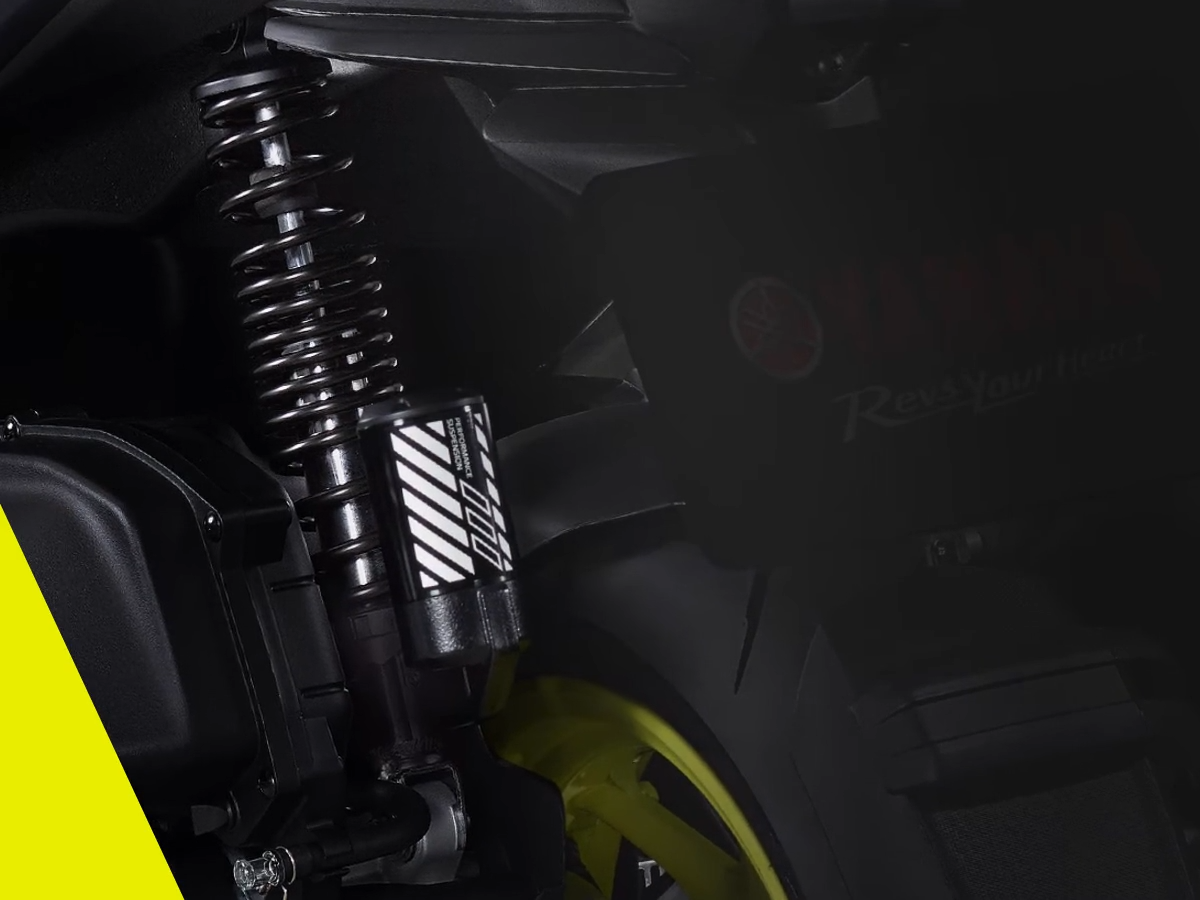 懸掛部分,前叉加長 5mm,後避震則換成附掛油樽瓶的雙筒設計(125 版為沒有油樽)。避震器彈簧 K 值經重新設定,讓吸震更柔和舒適。