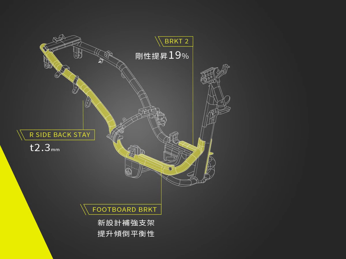 車架方面,DL8 鋼管結構經強化,部分管壁加厚 15%,並新增強化支架,在維持原重量下縱向剛性提升 19%。這意味著車架在急煞、加速或經過坑洞時變形更少,過彎更穩定。