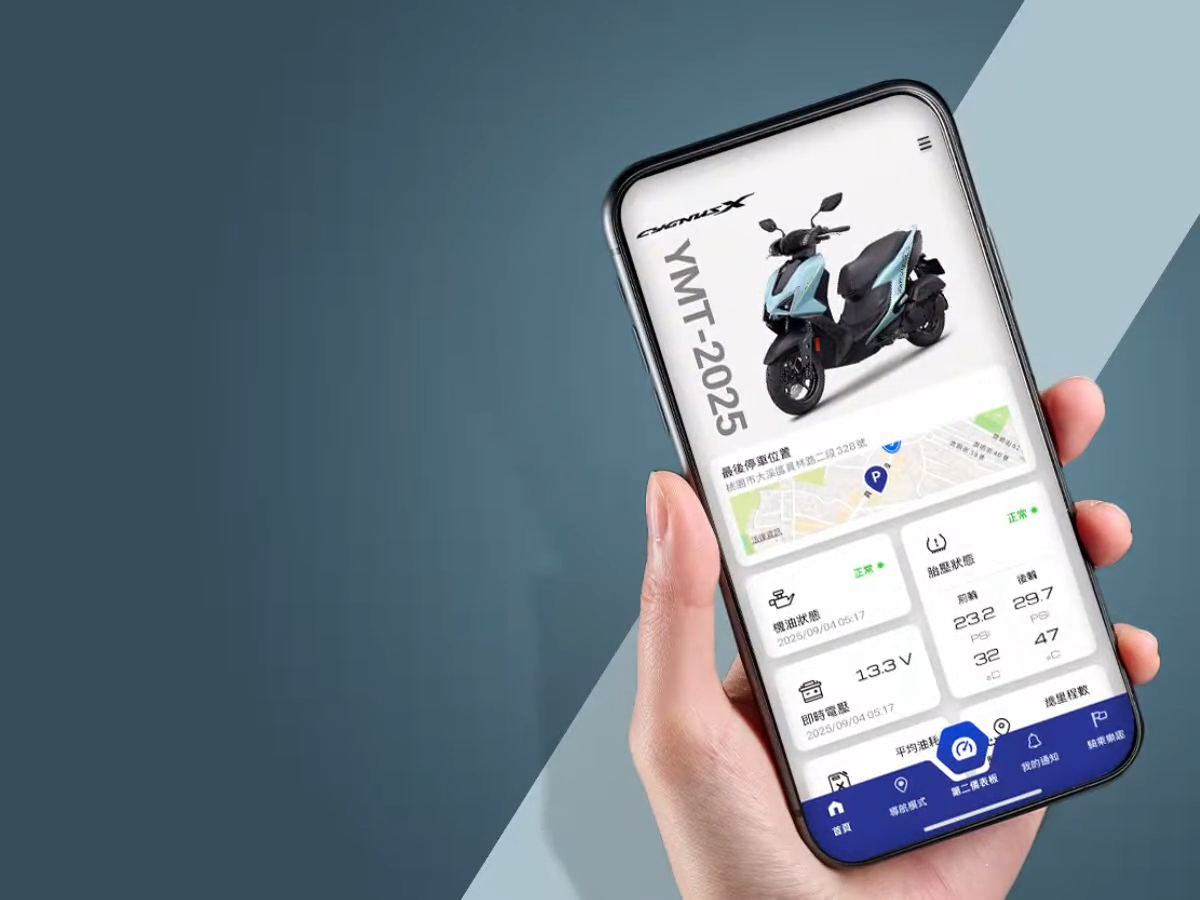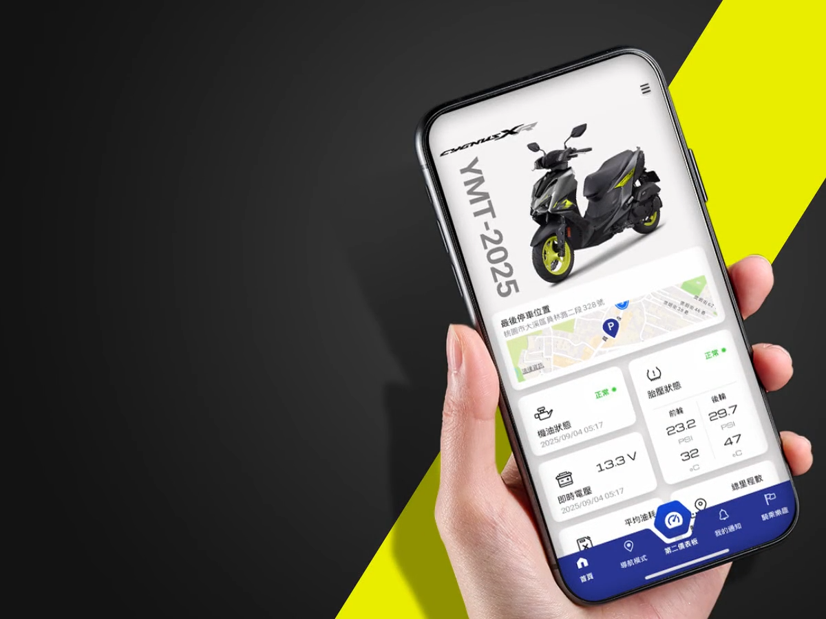 YAMAHA Cygnus X 備有 Y-Connect TWN App連結車輛與手機,不僅可隨時掌握機油、電瓶等車輛狀態資訊,同時可啟用第二儀表板功能,使用導航、定位尋車、分享路線等功能。