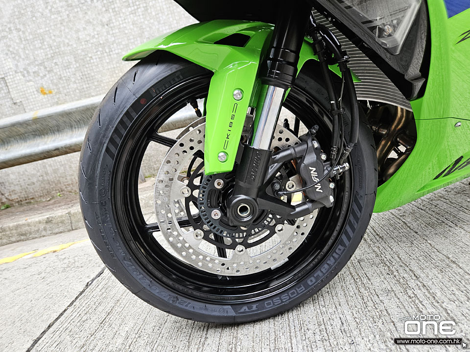 雖然制動系統的規格維持不變,但新一代636棄用傳動菊花煞車碟,改用310mm圓型煞車碟,廠方表示以配合ZX-10R的風格,放射式4活塞煞車卡鉗及直推式煞車手泵維持不變。ABS防鎖死煞車系統亦都獲得改良,據廠方講ABS介入時更順暢,另外還有快排(只有升檔)。避震方面,SHOWA SFF-BP直徑41mm倒立前叉配全調校功能(回彈、下壓及預載),Uni-Trak單筒多連桿尾避震同樣具有全調校功能。