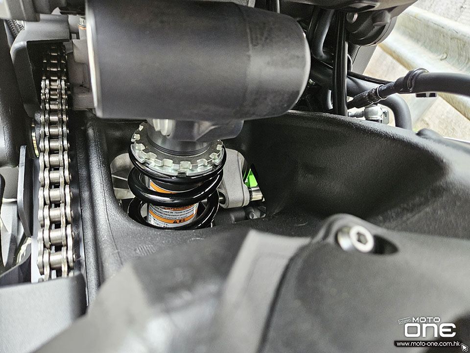 電子功能還有四個馬力模式,包括Sport運動、Road道路及Rain濕地,三個模式已預設防打滑KTRC(循跡系統)的介入程度。 還有Rider自定模式,可讓騎士自行選擇馬力及從三段KTRC(循跡系統)自行選擇。