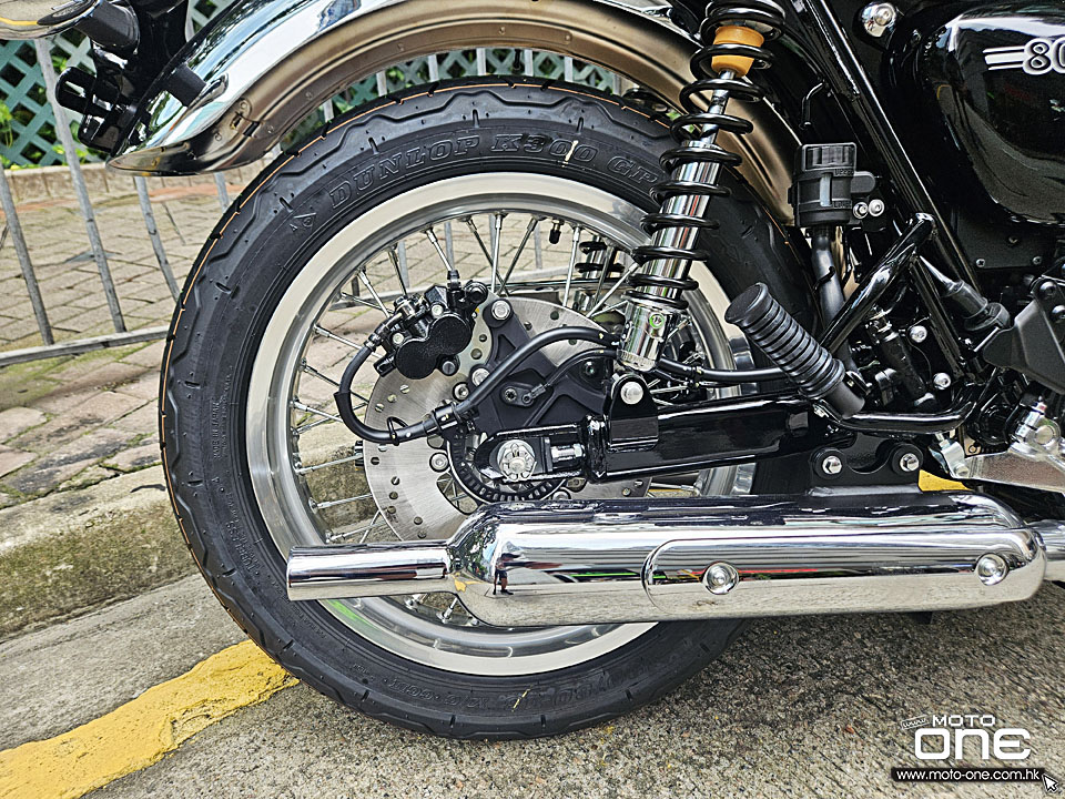 MEGURO K3繼2021年推出後,2026年裝備維持不變,而2026年款變上亮黑的前後輪框,油缸採用黑色鏡面塗裝加琥珀色組合,反射出特別的色彩效果,而兩側同有MEGURO經典圖案,但拉花亦與2021年款有所改變。