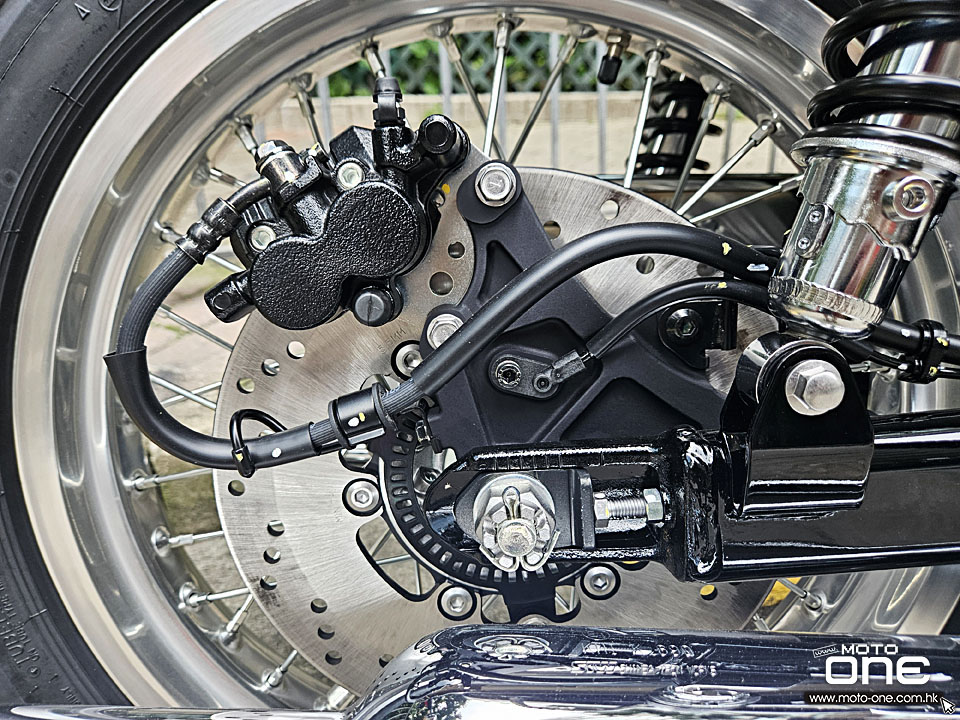 320mm鑽孔碟配兩活塞煞車卡鉗,配19吋鋼絲輪框。
