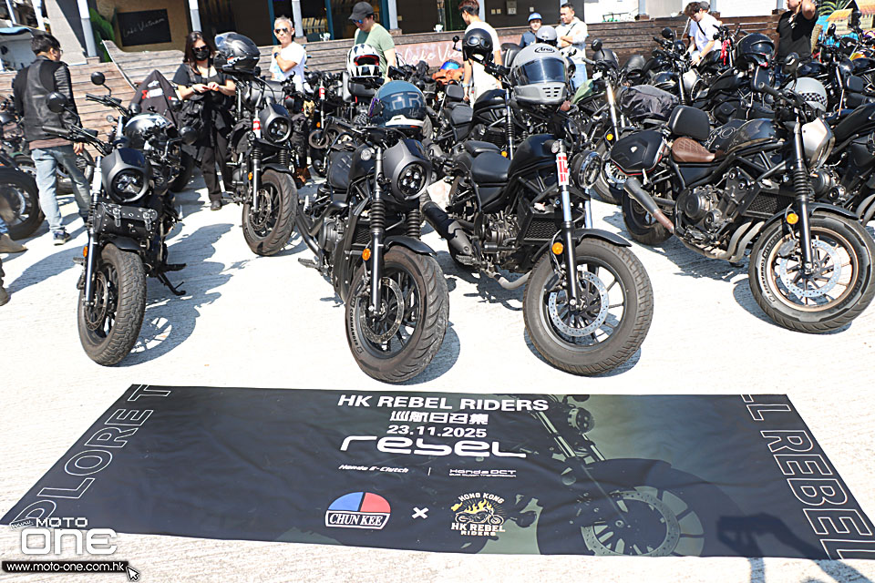 2025 年 11 月 23 日(星期日),本港 HONDA 電單車代理燦基聯同 HK REBEL RIDERS 車會舉辦「REBEL 巡航日」活動,約四十多位 REBEL 車主踴躍參與,一同開心遊車河。當日集合地點為燦基長沙灣服務中心,第一站前往大圍城門水塘水壩,最終到達大尾篤某間越南餐廳享用午膳。