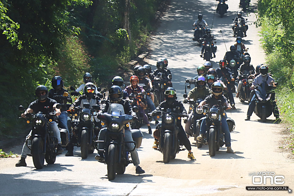 當日天氣清涼舒適、風和日麗,非常適合以巡航為樂的 REBEL 騎士出遊。首站城門水塘水壩是熱門「放飛機」地點,景色怡人;REBEL 大隊整齊排陣後,來了一張開心大合照,隨即再浩浩蕩蕩駛往大尾篤。