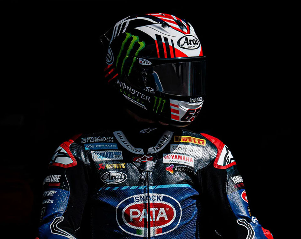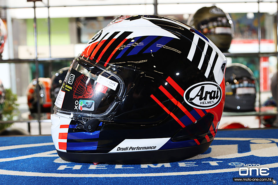今次推出的 ARAI RX-7X REA SB3,是李亞比賽系列的第三款紀念拉花頭盔,造型設計源自他於 2025 年效力 WSBK YAMAHA 車隊時所配戴的比賽頭盔,由著名設計團隊 Drudi Performance 親自設計。整體以紅、白、藍及黑色線條交織而成,營造出強烈速度感與賽道氣息,同時延續 ARAI 低調而專業的賽車風格。