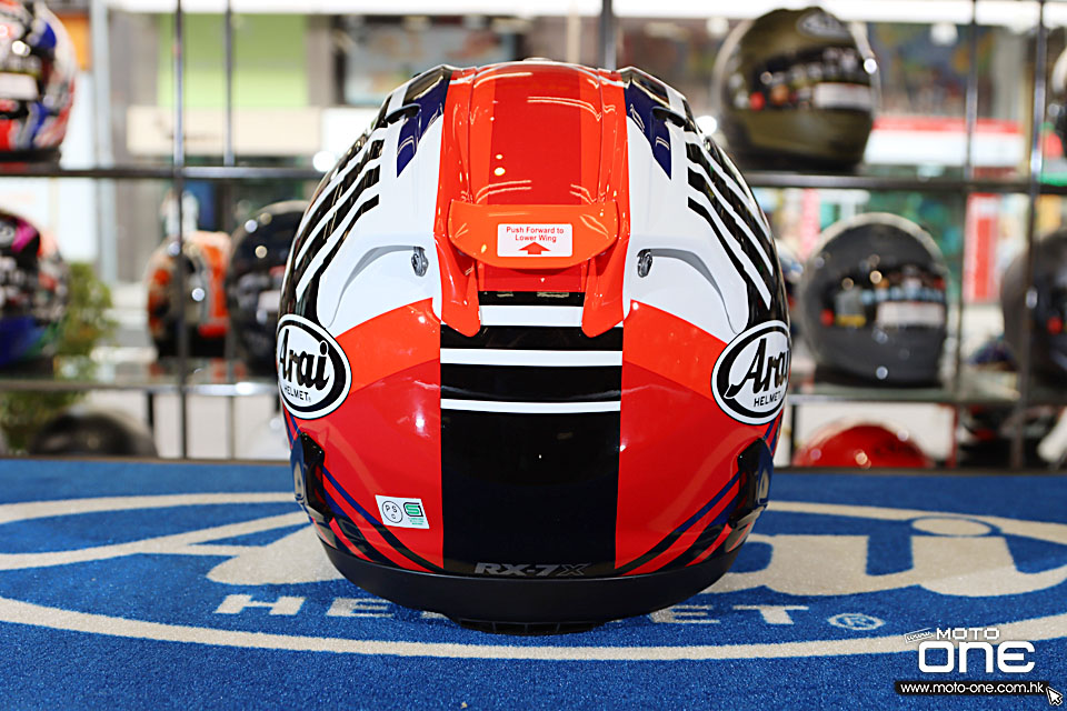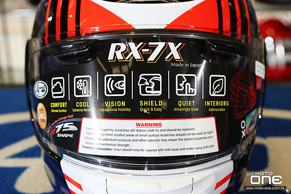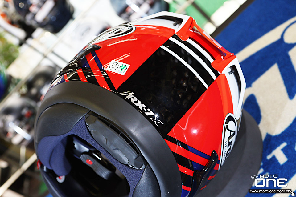 RX-7X 作為 ARAI 旗艦級全面頭盔,採用堅固而輕量的 PB-SN複合纖維帽殼,配合 R75 圓弧外形設計,提高在跌撞時的滑動分散能力;同時配備進化版 VAS-V 鏡片系統,換鏡更方便之餘,亦讓額頭位置擁有更大保護區域。通風方面,頭頂多組進氣口與後方擾流排氣結合,能有效帶走熱氣,長途或激烈騎乘都保持清爽。內裡則採用可拆、可清洗及可微調的抗菌內襯,讓配戴更貼服、更舒適。