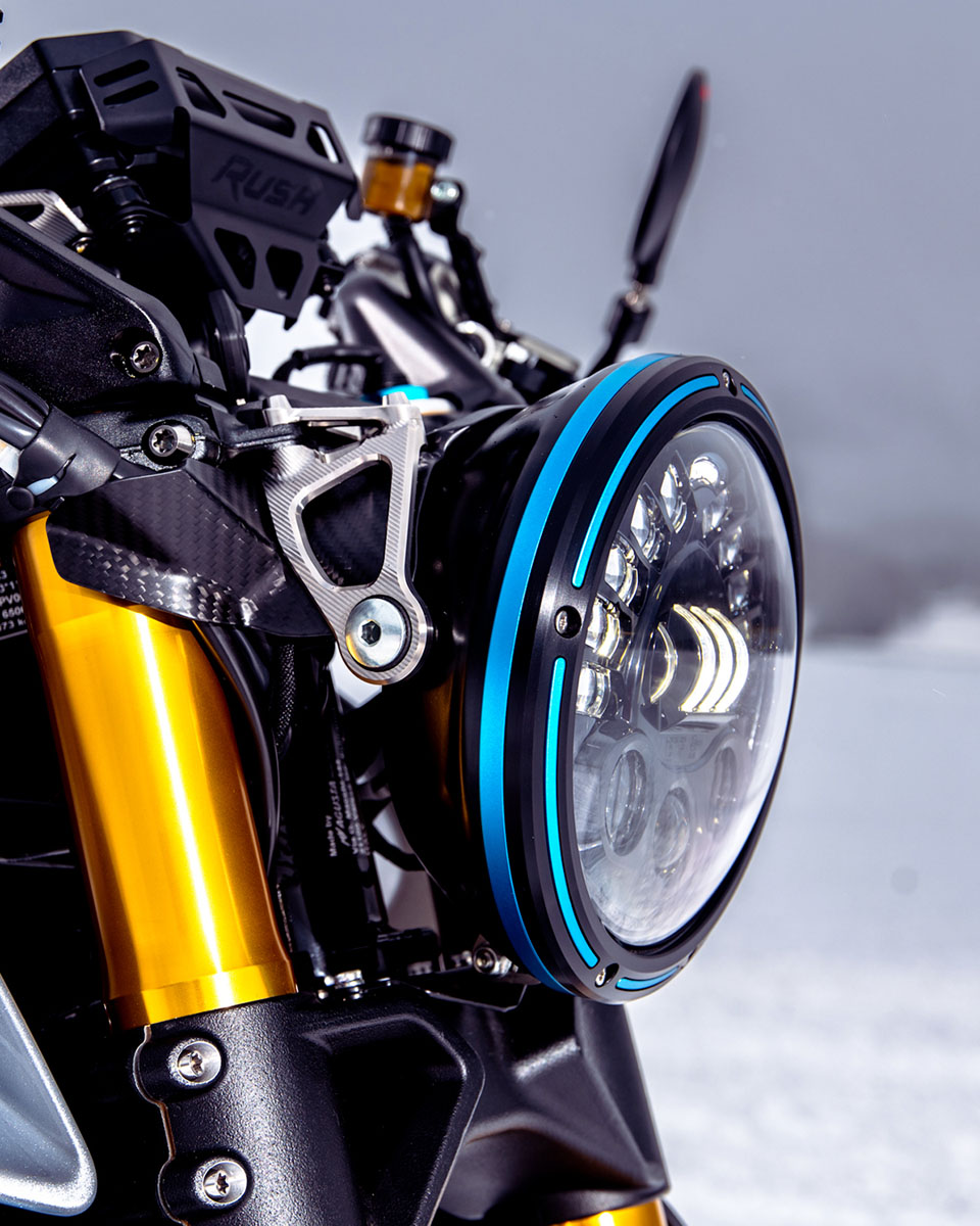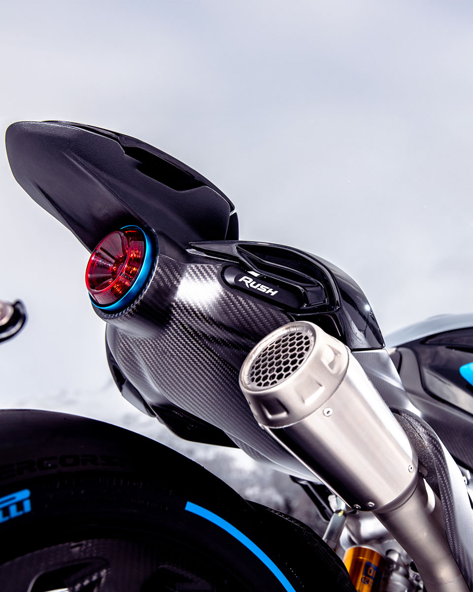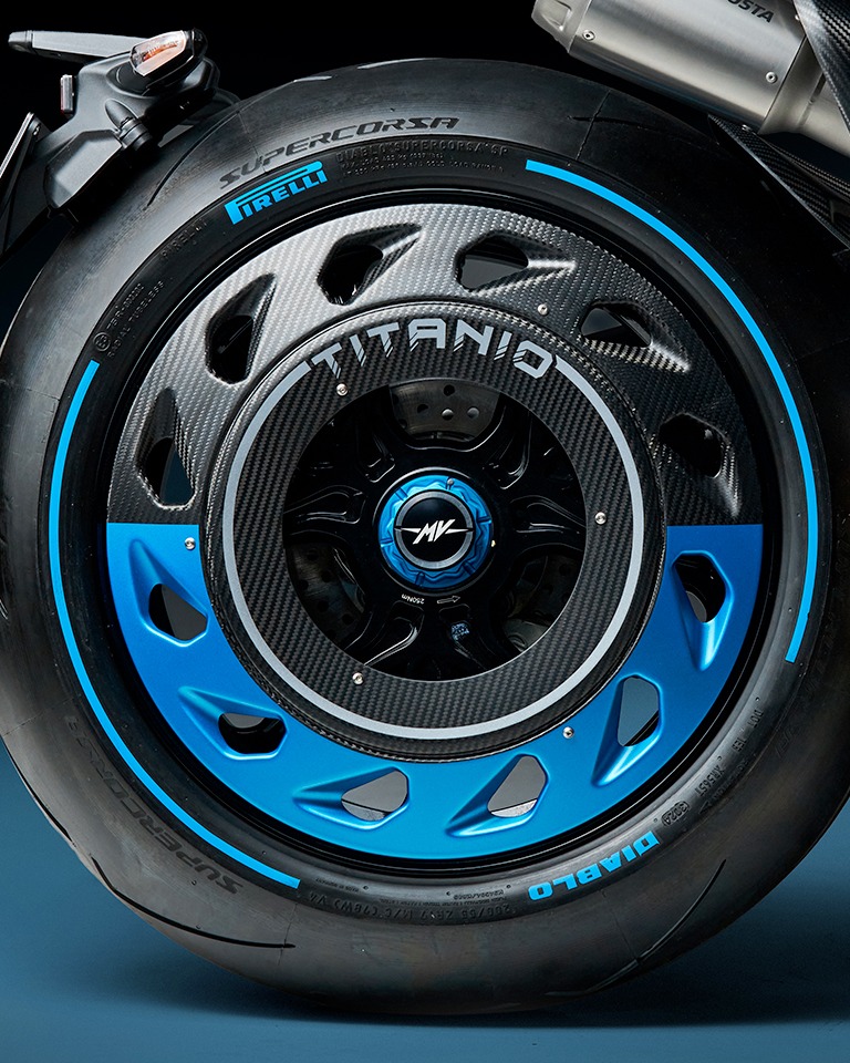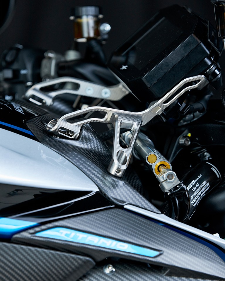 碳纖維依然是RUSH的重要配置。MV AGUSTA表示,TITANIO版本的所有碳纖部件均改用全新的斜紋織紋表面處理,取代以往的紋理設計;同時,部分經陽極處理的鋁合金零件,亦統一採用專屬的「Blu Titanio」「鈦藍色」色調作為點綴。