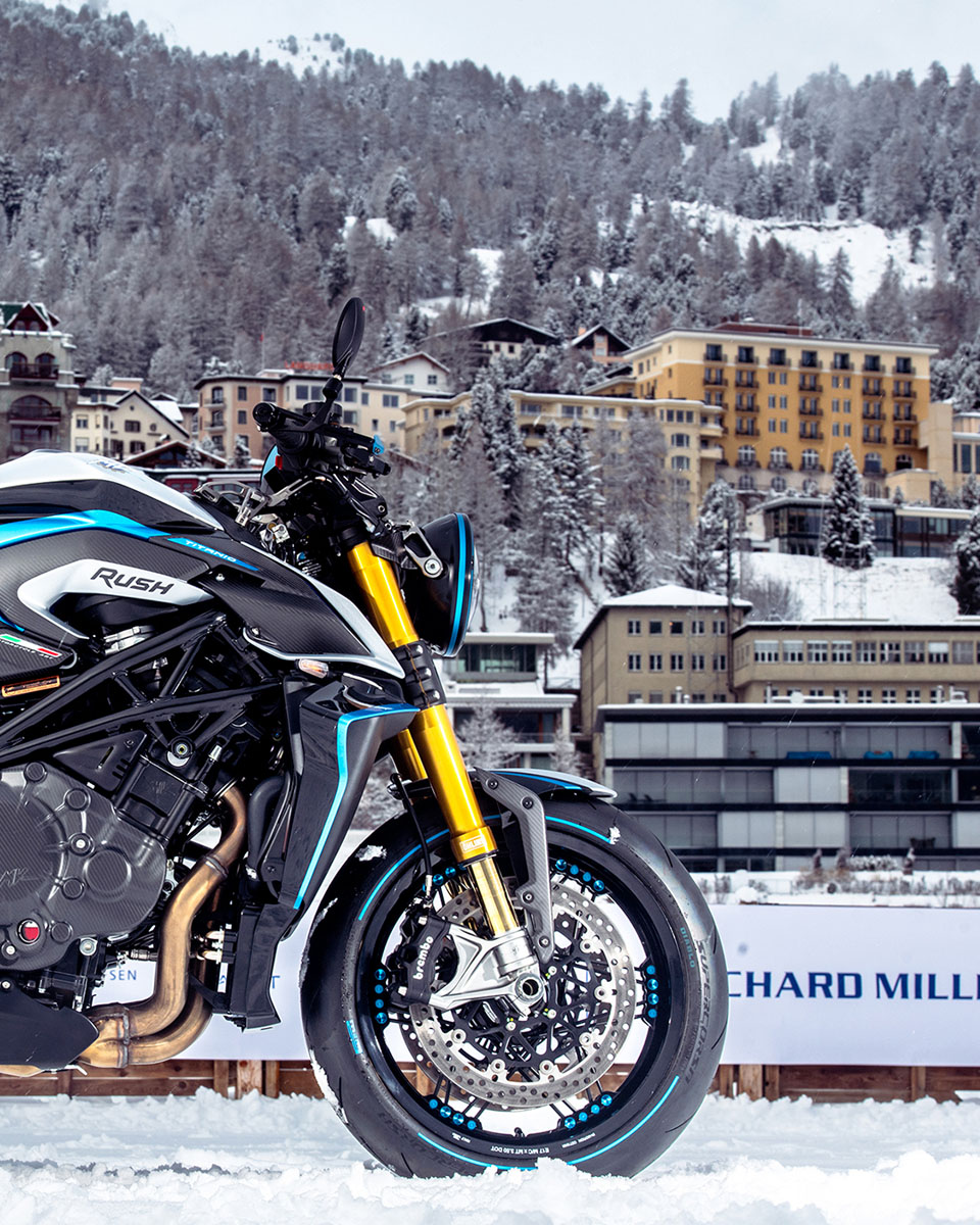 MV AGUSTA選擇在「The I.C.E.」(1月30日至31日舉行)發佈RUSH TITANIO,這項每年冬季在瑞士聖莫里茨舉行的傳統古董車盛會,主辦方會在冰雪環境中展示及安排珍稀汽車與電單車進行動態或靜態展示,藉此突顯機械工程、設計美學與生活品味之間的關係。所以MV AGUSTA選擇在The I.C.E.發佈RUSH TITANIO,象徵著車子極具收藏價值。