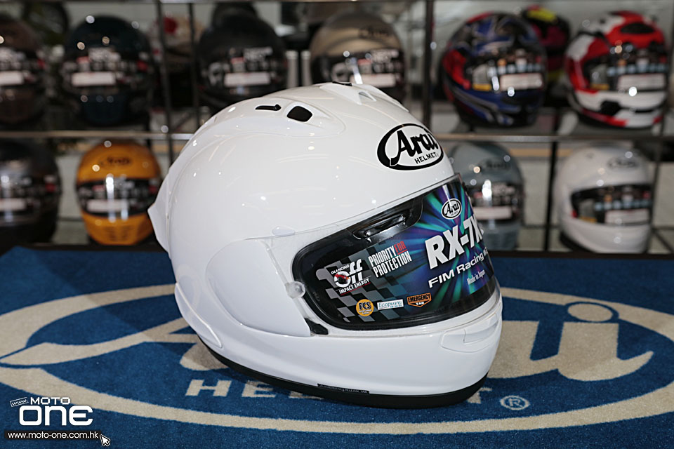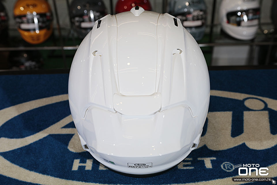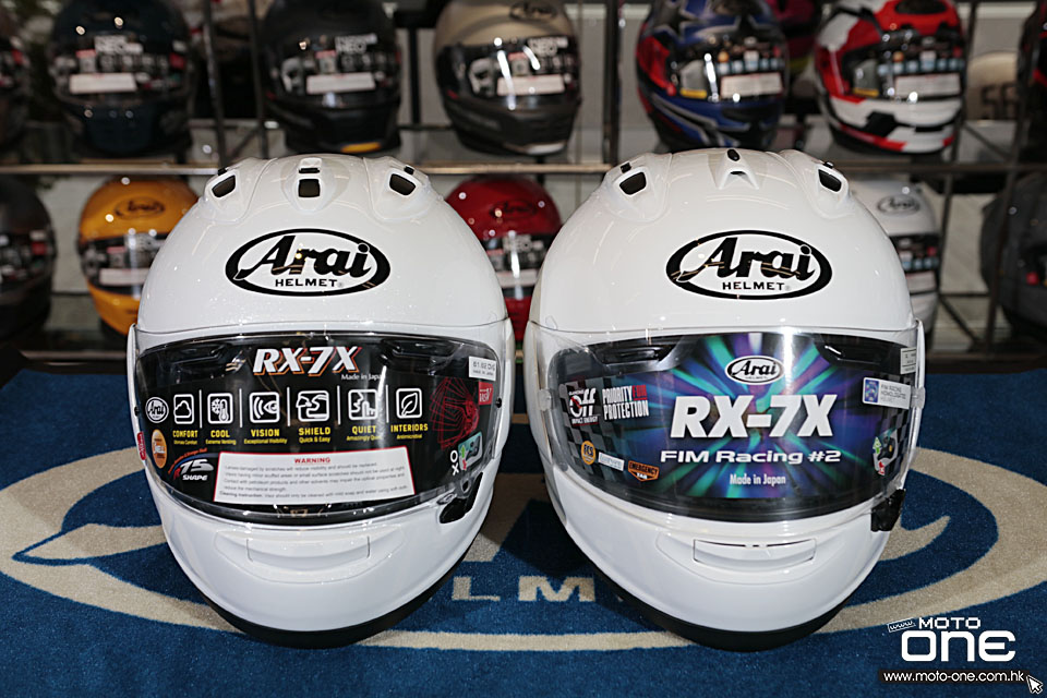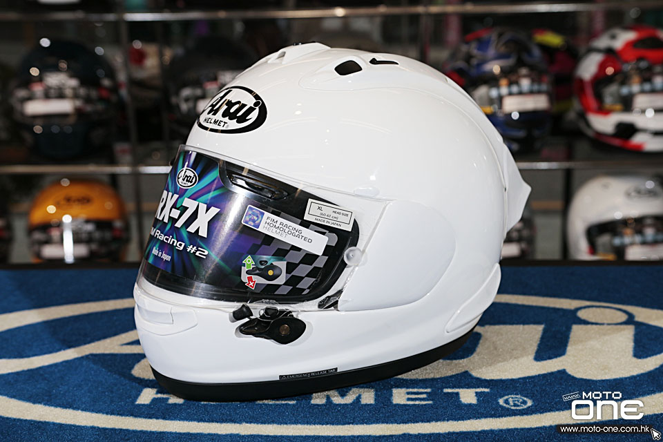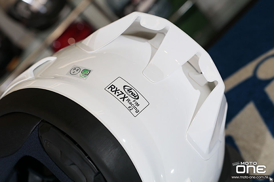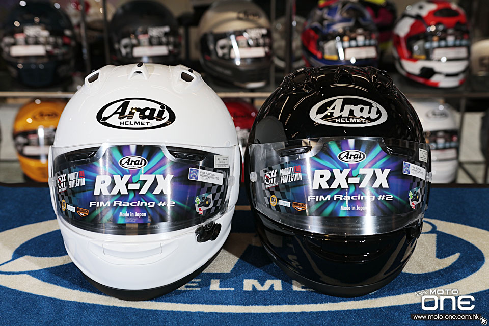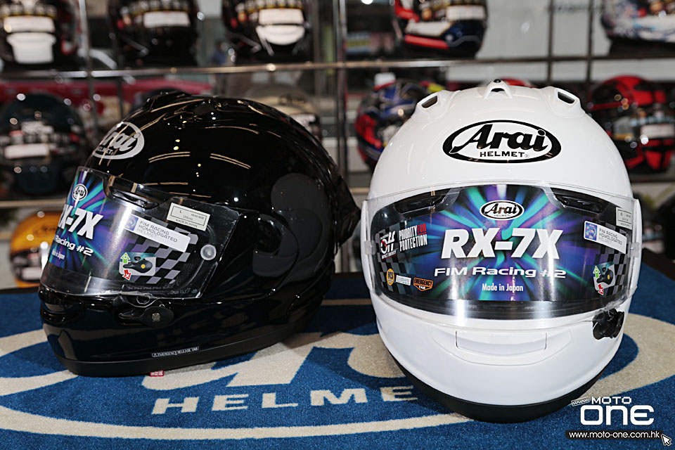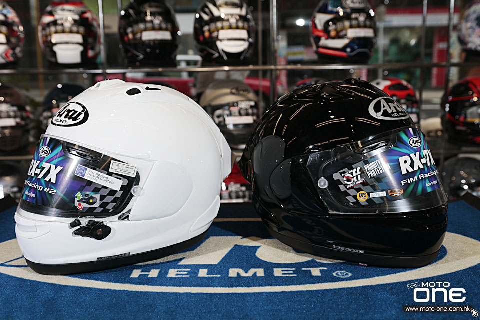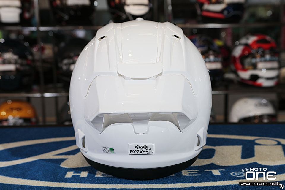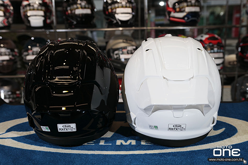 ARAI 最新的 RX-7X FIM RACING #2賽車頭盔到港,原裝已附有尾擾流板,無需另購,並有黑與白兩色可供選購。
