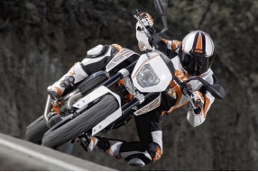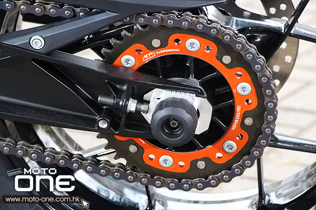 結合NK街車及SUPERMOTO基因而成的KTM DUKE 690,其R版終於抵港,讓本誌詳細介紹標準版與R版的分別。 以生產爬山車聞名的KTM,是其中一間最早推出市販SUPERMOTO的車廠之一。面世於2008年的KTM 690 DUKE雖然屬NK街車,但外型也流露著SUPERMOTO及OFF-ROAD的風格。事實上,除了690 DUKE,還有690 ENDURO、690 SMR及690 SMC等多個版本。而車輛特色是採用鋼管車架及澎湃4衝程單汽缸引擎,其特性是歡迎騎士粗暴的油門控制方式,也就是說要狠狠「質」落油門才可享受到KTM 690 DUKE的駕駛樂趣。 為了增加車輛的野性,2012 690 DUKE不但有新外型,排氣量也由654cc增至690cc,並且使用電子油門及電子燃油噴注供油,此車早前本誌已作詳細介紹,讀者可以回顧相關內容報導。 至於有賽車味道的新到港R升級版,使用了比標準版更多的高級部件,而最特別是座位右方改用透明膠蓋,隱約看到風隔的輪廓。其次是改用了蝎子排氣管、採用奪目的CNC上下眼鏡、添加了引擎護架、前叉腳PK膠、尾擔PK膠、賽車升高腳踏、KTM POWERS PARTS座墊、WP全調較尾避震及頂級BREMBO M50剎車卡鉗。馬力方面,R版比標準版增了2.1匹馬力。 售價港幣:HK$118,000 ●2013 KTM DUKE 690 R 擁有更多頂級裝備,包括蝎子排氣管及頂級BREMBO M50剎車卡鉗。 ![]() ●2012 KTM DUKE 690標準版 配備標準的原廠排氣管。 ●2013 KTM DUKE 690 R版其中特點座椅右則的透明風廂,可隱約看到風隔。 ●R版更換了蝎子賽車排氣管。 ●R版不但使用奪目的CNC上下眼鏡,43mm粗的前叉備有調較功能,標準版沒有調校功能。 ●CNC下眼鏡。