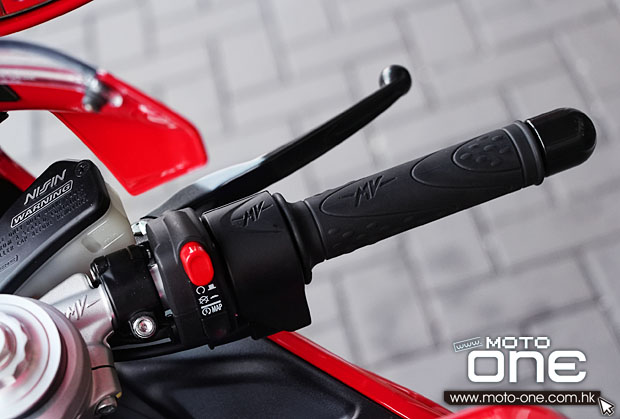 在不久前試駕旗艦版F4 RR的專欄內已詳盡介紹車輛的裝備,包括OHLINS前後電子避震、電子釘把、頂級的BREMBO M50放射式剎車卡鉗、輕量化鍛造輪框及201hp的馬力輸出。但相信最讓車迷著迷是高端的電子系統,例如不論是升或降檔均無須使用離合器桿,只要踢高或踏下波棍便可,降檔時電腦還懂得自動補油,讓Engine brake減至最低,大大提升車輛的穩定性。 由於車價關係,F4及F4R版當然沒有採用跟F4 RR相同的裝備,但同樣載有跟F4 RR版相同的MIVICS綜合電子管理系統,功能包括剛提到的自動補油、馬力模式選擇及循跡系統等等。但F4及F4 R卻是使用傳統的機械式倒立前叉避震、機械式尾避震及機械釘把,馬力也由201hp下調至195hp,重量比F4 RR重1kg。 至於F4與F4R的分別,前者使用全調校50mm的Marzocchi倒立前叉及全調校Sachs尾避震。而F4 R同樣配備Marzocchi倒叉,但使用更高級的全調校OHLINS TTX尾避震,車輛還使用跟F4 RR相同的輕量化前後輪框,但F4與F4R均是使用BREMBO M4的放射式剎車卡鉗,其餘裝備大致相同。 ●三個版本的MV AGUSTA F4系列擁有各自的車身拉花,圖片是F4 R版。 ●純白車身的MV AGUSTA F4。 ●擁有先進電子裝備的MV AGUSTA F4 RR旗艦版。 ●F4 R及F4版均是使用50mm的Marzocchi全調校倒立前叉及BREMBO M4放射式剎車卡鉗。 ●F4 R配備OHLINS TTX全調校尾避震。 ●F4使用全調校Sachs尾避震。 ●F4R及F4均是使用機械式的釘把。 ●F4使用10柱式的輪框。 ●F4R使用跟F4 RR相同的輪框。 ●從MV AGUSTA F3引入的MVICS電子控制系統,包括控制8段調校的Traction Control(循跡系統)及不同馬力輸出選擇(Mapping)等等。