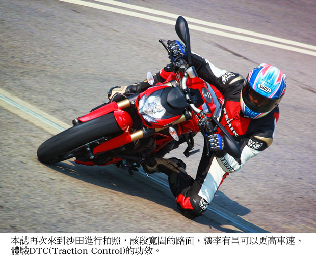 至於848,他說毫無疑問比較易開,但不知道是否11°系統起了作用,低轉時引擎運轉反應比1098或1198暢順,沒有不尋常諧震,這點可令初接觸L2引擎的騎仕倍加安心感。再者由於引擎有超過800cc排氣量,馬力輸出絕不輸蝕給日本直4引擎的600cc跑車,可是座姿方面跟1100分別不大,雖然有利轉向,但長時間乘座背部容易出現疲倦。有關李有昌試車感受,請收看本誌製作的影像。