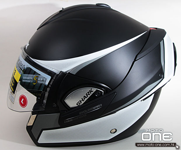 揭面頭盔是實用常現的街用款式,仍可充當全面頭盔之餘,也可以揭起迎接涼氣及新鮮空氣,是俱彈性的頭盔款式。是次介紹的Shark EvoLine series3系列不單有上述的優性,更可將揭面可翻動170度,下巴部份達至頭盔的後方,有效減少風阻,在擾流上更勝常見的揭面款式。