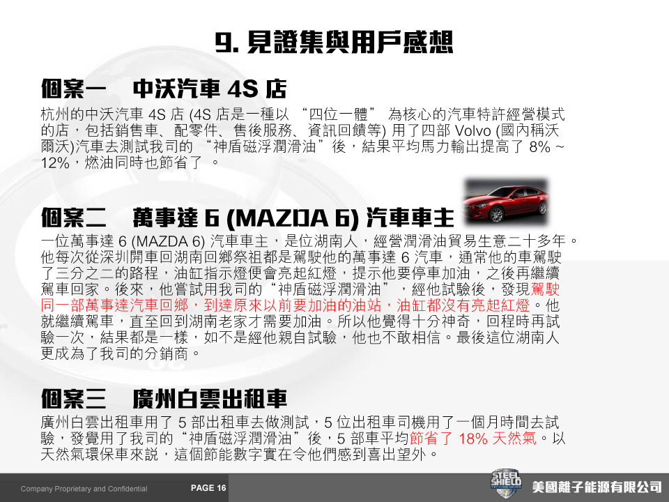 ![]() ![]() 汽車使用神盾磁浮潤滑油DYNO專業汽車馬力測試報告 ![]() 一輛福特Focus 2.0L 汽車使用專業汽車馬力測試機Dyno的測試報告。結果顯示,在沒有任何機件改動的情況下,單單只是使用神盾磁浮潤滑油後,引擎最高馬力由114.9 增加至130,增加了超過13%!