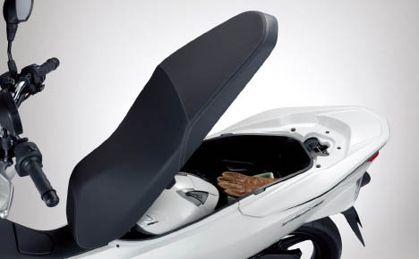 據廠方講,全新PCX的製造基地由過去的泰國轉移至越南,目的是更有效利用HONDA的採購網絡。全新PCX在舊款基楚上追求多項的新目標,包括更寬敞雙騎空間、更佳節能效果、讓人一看便知道是PCX、給騎士在操控上更有信心的“eSP”聰明引擎等等。 ●新車棄掉上一代的「枕頭仔」背椅,廠方講新的一體式座墊為騎士及乘客提供自由度更大的移動空間。![]() ●在加速時仍可提供充足的承托力。 新設計一體式座椅 第一代PCX面世時,目標是追求接近250綿羊的寬敞及舒適乘座感,畢竟車身體積有限,要真正達到250級的乘座感是十分困難;雖然如此,PCX仍有很好的舒適性,而全新PCX採用一體式梯型座墊,並放棄了舊款的「枕頭仔」背椅,據廠方描述好處是讓騎士及乘客在騎乘時提供自由度更大的活動空間,但座高及座椅底的儲物容積同樣是760mm及25升。不過軑把左下方的小型雜物空間卻增加了74%容積,可擺放一支500ml膠樽裝飲品,與此同時還有12V插頭,方便車主為手機等電子用品充電。 為了改善上一代車輛座墊打開後可能突然墮下的缺點,新車的座墊關節增加了油壓裝置,在擺放頭盔或雜物時更加方便。 雖然新款PCX沿用上一代車架,但油缸卻由舊款5.9升增至8升,據HONDA以60km/h車速在沒有變化環境下作測,續航力大約由上一代的289km增至新款的350km,大約是20%增長。還有油缸蓋的開關結構經改良後,提供了像油壓順滑的開合效果。 ![]() ●採用新複合物製造的原裝輪胎比舊款胎減少20%磨擦系數,行駛時阻力減少,是慳油原因之一。 節能輪胎