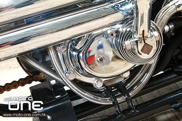 在男人的眼裡,到底電單車扮演著什麼角色?代步工具、女朋友、嬰兒、或是一件藝術珍品呢?每人價值觀不同,就如本文經過ET-CUSTOM與車主精心雕琢的哈利大衛遜,全車手工作品處處,說她是一件藝術收藏品比較貼切吧﹗ 一副硬骨頭這部哈利尤如生長於2次大戰時期,最明顯是那副高拉力鋼管車架,與尾擔連成一體化,尾避震是依賴車架與坐鞍底部的一對可調式彈簧了。但她用上了頭/尾碟剎車才完全擺脫了2戰的影子。現代化的浮動式設計,還配上4活塞對向卡鉗呢﹗巨大的風冷式V2 OHV引擎當然經過精心翻新、美化及電鍍處理,就連那2對「筷子」套也經過相同處理,2個化油器直接入風,套用人手精心打造的風杯,看上去非常原始兼賽車化。再留意那2條人手製作的排氣喉,互相糾纏的造型特別閃亮及有優美的型態。之前本誌介紹設計師Geoff另一台作品也有類似的設計,這很明顯已成為他的風格。 腳踏起動是其特色,如此巨大引擎,若非忠於此道者未必能輕易把她撻著,當然對車主完全不是問題。那閃閃生輝的頭擔同樣全人手打造,雙筒油壓彈簧頭避震正好置身於頭燈下,電鍍功夫當然少不了。巨大的機殼蓋是哈利的設計特色,前置腳踏是帶領同類型車子潮流之作,基於對美的追求,就連頭/尾剎車泵也經過電鍍處理,毫不馬虎處處用心。馬鞍坐椅只供單人騎乘,獨個兒享受。那纖巧的油箱,取自哈利Sportster加裝而上。一字型把手,也是為車主的駕駛習慣而度身訂造吧﹗ 忠於哈利的一群,電鍍是美學的主流,想得到或想不到的都是如此處理,總之令車子閃閃生輝,就連左右牛角也不會放過,當然牛角碼也包括在內,一對完全度身訂造的尾沙板支架,又是那句:只此一家ET-CUSTOM GEOFF。 車子上有大量部件都屬手工製作、改裝,例如先前提及的引擎側蓋,鋁合金人手製作經過加工處理,成為閃閃生光的鏡子般。風冷式大排量四衝程 V2 OHV 引擎早已是哈利的標誌,後期令日本人也滲入了的美國元素,他們的產品也相當哈利的,正是這由來。最能引發人家的好奇心的製作莫過於那人手打造經電鍍處理的機油格殼,正設於尾輪胎左側位置,看下去相當科幻感覺,看來更換油格時十分方便快捷...... 總結 哈利電單車的各型號,除了哈利迷外並不會太多人認識,何況是這台經過精心改裝的Shovelhead,她已是面目全非,完全自我風格,只能說是一部經過改裝的哈利而已。到目前為止,她完全是獨一無二如藝術般的珍品。 ●此改裝車的外籍車主。 ●並非只作欣賞的藝術品,完全切合車主的駕駛需求。