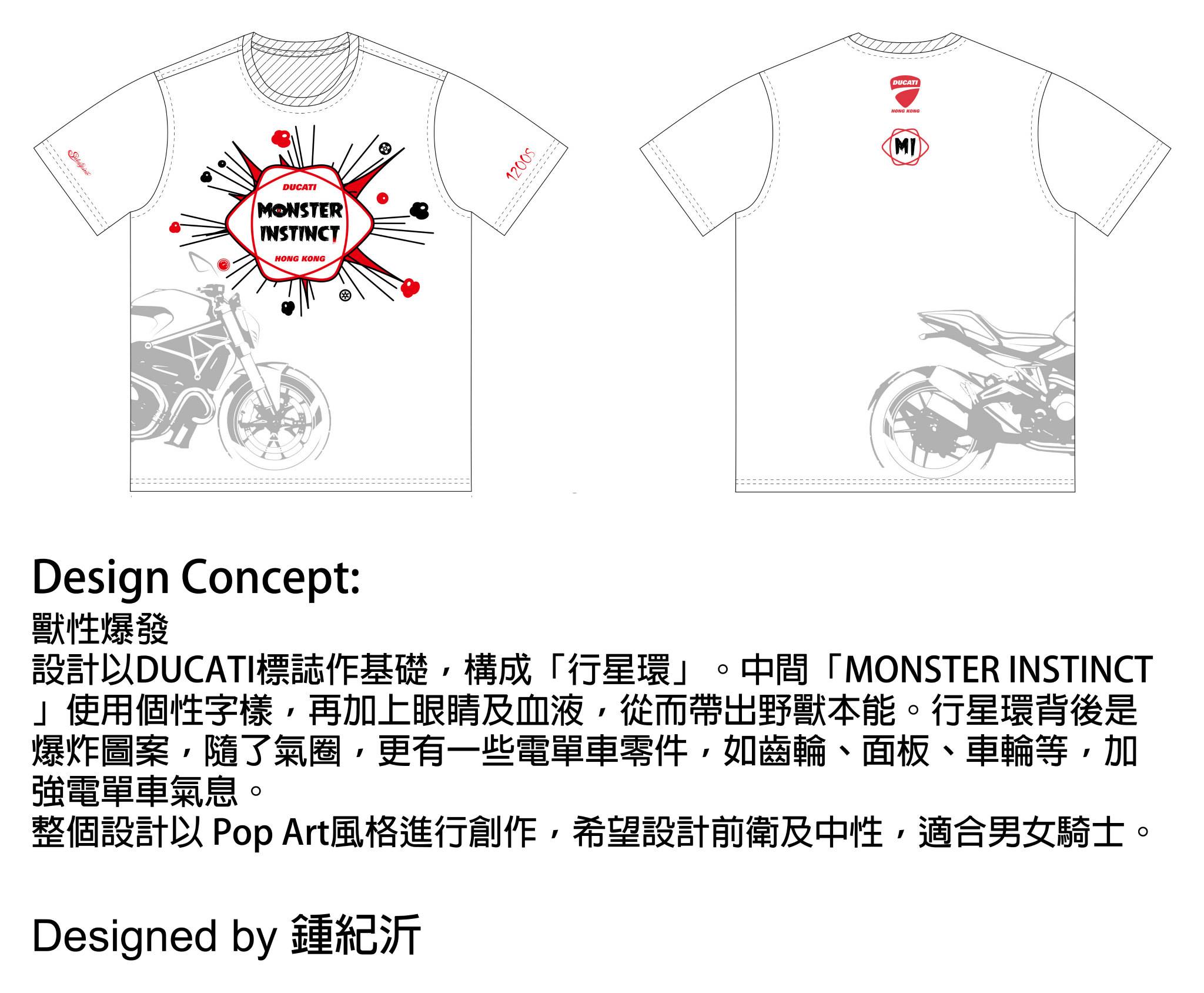 Earlier in April, Ducati Hong Kong celebrated the arrival of the new Monster 1200s, by organising the "Your Monster Instinct T-Shirt Drawing Competition". We received a vast amount of support and have selected the following best entries for you to vote for as the "Most Liked" design.