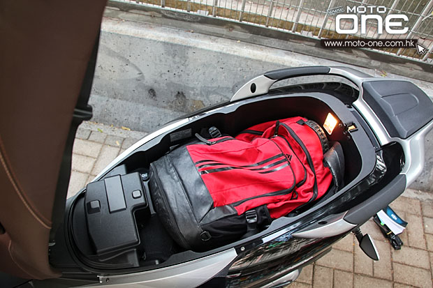 雖然結構精密的雙搖臂前懸掛沒有改變,但一對前輪框由舊款12吋改為13吋,輪胎則由120/70-12改為110/70-13,提升直路穩定性同時保留了轉向靈活度,車輛保留了碟煞系統。輪框設計也由舊款10柱式改為五抓式,感覺更硬朗。新款MP3的實用性有明顯提升,尤其是全新設計座椅底下的一體式存物空間,可同時擺放一頂大頭佛及一頂開面帽,取代舊款兩房式間隔設計,因此新車沒有了舊款揭背式尾箱,而座位底還內置照明燈,方便夜間尋找物品時作照明,另外12V插座可為電子產品充電。新設計的儀錶頂上跟上一代MP3相同,設有手掌深的雜物箱,並附設USB插頭。