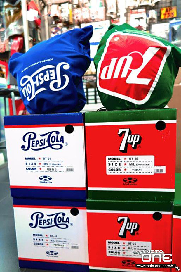 OGK PEPSI & 7UP - 百事與七喜復古懷舊造型頭盔抵港 一向有製作懷舊造型頭盔OGK,今次與大家熟識的百事與七喜合作,引用兩著名汽水經典及俱歷史價值的圖案製作,生產此四款與別不同的特別版頭盔,外觀鮮明耀目。今次新貨抵港數量有限,有意的讀者可到亞林電單車行查詢與購買。