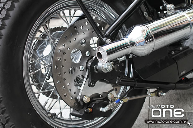 ●古老前叉配備現代化的碟煞,使用16吋合金輪框但配備特別的肥大輪胎。(ZERO ENGINEERING TYPE 5)