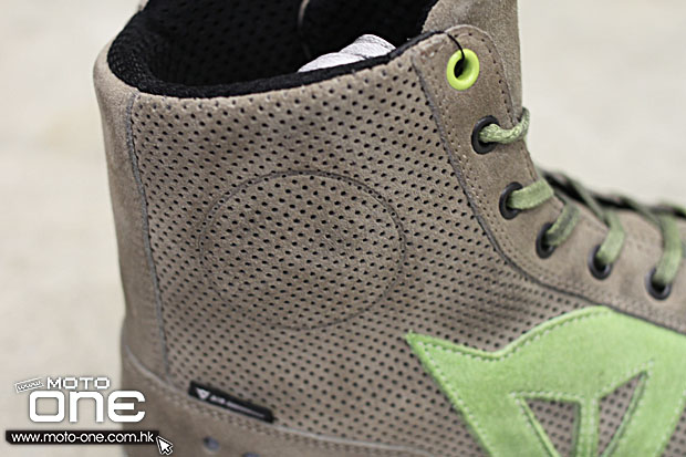 另外,鞋帶及鞋底橡膠設有復古懷舊的漆黑彷污垢設計,令外觀時尚特別。此外,STREET BIKER D-WP俱有全鞋打上透氣小孔,通爽而舒適並且俱有合適的保護性。
