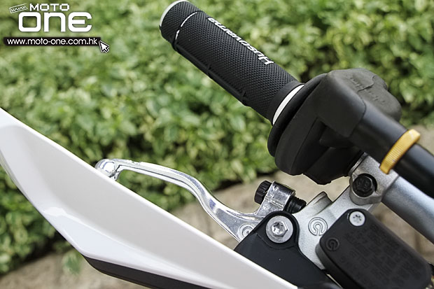 相信大部份用家認同最不方便的是人手預調的2T混合油,但廠方認為這是最安全可靠的策略,避免因2T油泵噴咀淤塞而引致「拿庶」,即活塞由於沒有混合油的潤滑致超高溫溶掉或鎖死在汽缸內,試想像車子萬一在人煙稀少的山上「拿庶」,可夠煩了!廠方提示以1:60的2T汽油比例混和,對這個有才少許保留,還是拫據2T混合油瓶上的指示吧!不同品牌的2T均有其本身特性,混合比會有差異,備有300mm即近乎1英尺的WP倒立前叉,與使用多連桿330mm行程的同廠單筒油壓彈簧設氮氣輔助更柔順自然。以上避震行程並非一般道路越野車可以比下去的,可以選擇此車的用家,960mm的座高自然不成難題,可說是享受數字呢?