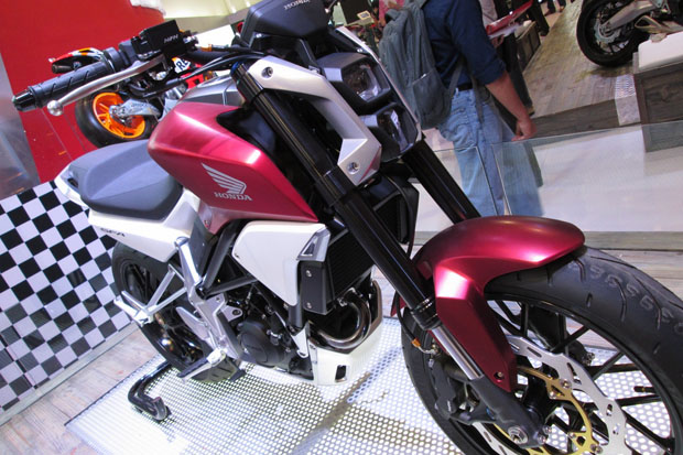 很明顯,SFA是一款玩樂型入門級車輛,採用鋼管車架、單缸引擎及前單煞車碟配置,但最吸引編者是使用單尾擔設計,並且使用倒立前叉,從早前在印尼展出的概念車照片上還可看到SHOWA倒立前叉具有下壓及預載調校功能。如果SFA有機會投產,看她能否超越MSX的佳績,成為新一代改裝寵兒。由於HONDA只發放SFA兩張照片,所以編者找來了SFA於去年印尼車展的照片。
