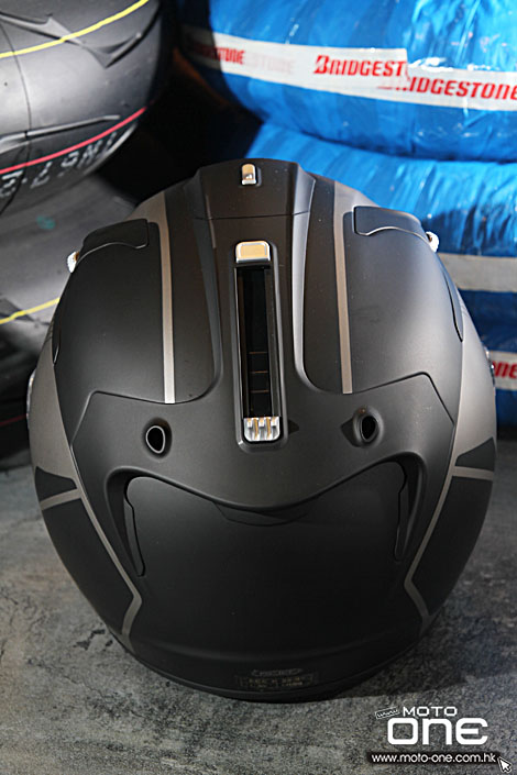 ●內置太陽鏡片,而開關一如HJC過往設計,放在頭盔的頂部後方。