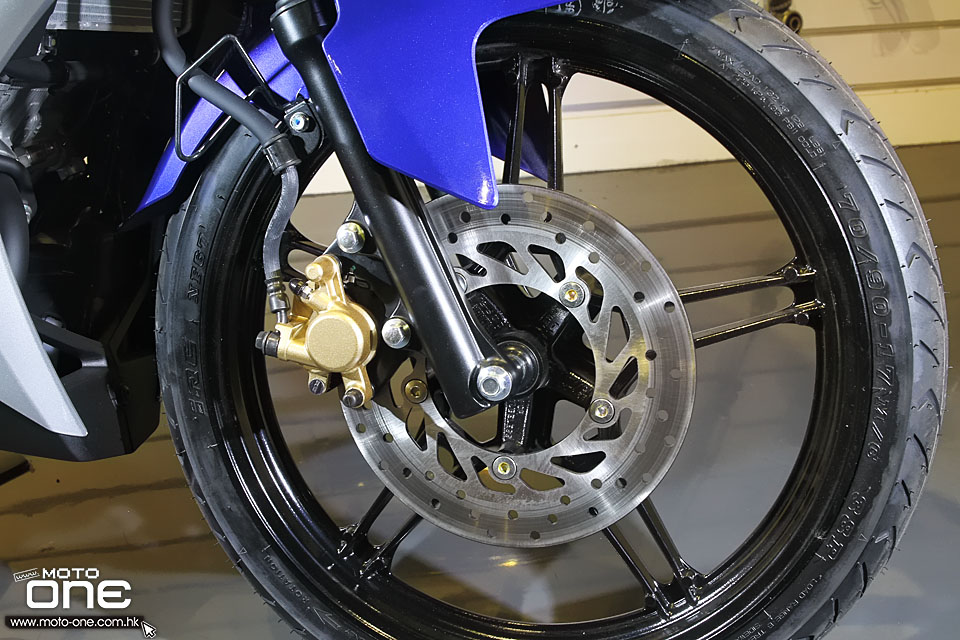 149.7c.c.水冷式四徎單汽缸SOHC 2活門引擎由電子燃油噴注供油,57X58.7mm缸徑與活塞行程近乎1:1是近年流行設計,盡量兼顧實際爆炸力與靭力表現,15.4ps/8,500rpm馬力與1.4kg-m/7,000rpm扭力峰值對比只有116kg的車子濕重綽綽有餘。只有780mm的座鞍高度,匹配大部份的東南亞地區用家,包括女性吧。以我們這彈丸之地,加下省油的引擎設計,4.2公升儲油缸已能行走相當的哩數,況且到處都是加油站呢﹗