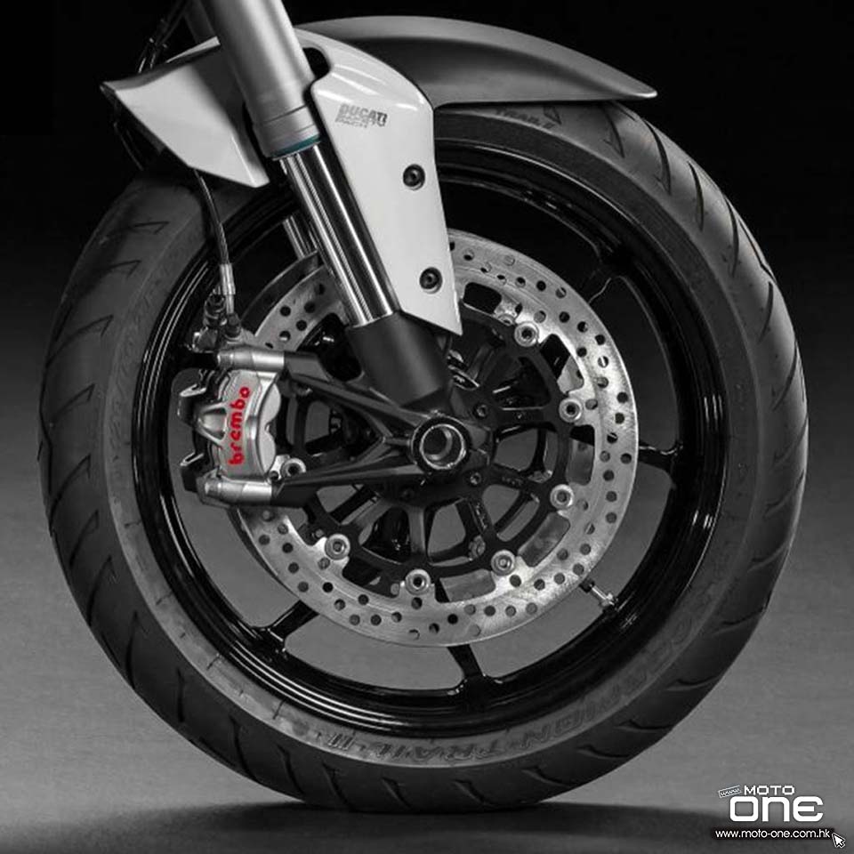 ●2015 Multistrada 1200S版的330mm煞車碟比標準版大10mm,採用brembo 16mm煞車手泵及M50煞車卡鉗。